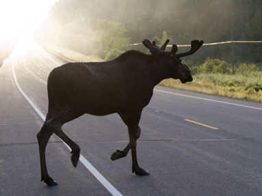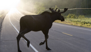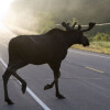 Двух лосей, переходящих дорогу сняли на видео рядом с Колодищами