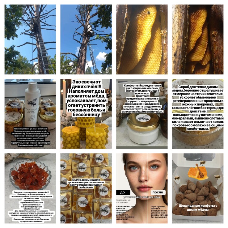 Свеча ЭКО 15р шт, мыло с омолаживающими свойствами 15р, крема по 25р, дикий мёд 290-330гр баночка 30р,леденцы с прополисом 40 копеек 1шт, увлажняющий тоник для лица 20р.конфеты шоколадные с диким мёдом 2.5р шт.