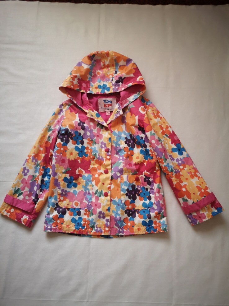 Яркий плащ для девочки Toni Boni. Маркировка -122 (6-7 лет). Длина - 52,5см, ширина в области подмышек - 41см. В отличном состоянии.