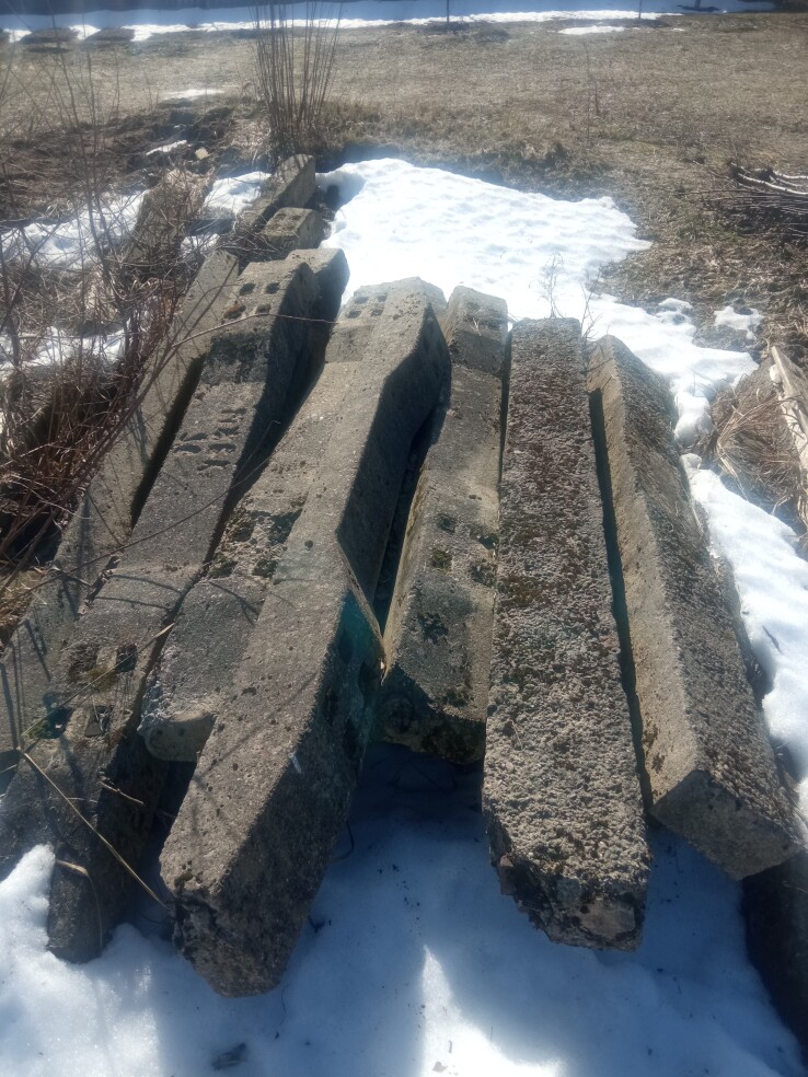 Бесплатно 40 железобетонных железнодорожных шпал б/у, размер длина 2700мм, ширина подошвы 300мм, высота 193-230мм, вес 250-260кг (объем бетона 0,108 м3). Ж.б. шпалы б/у - прочный материал для использования под фундамент дома, забора, садовых дорожек и др.
