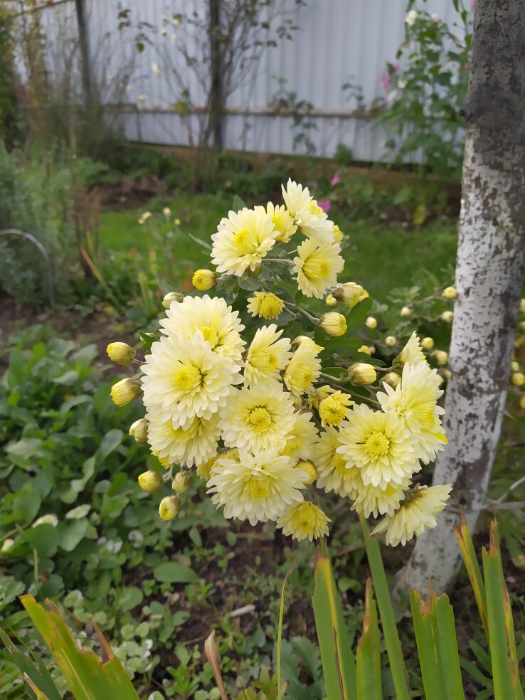 Хризантема светло - жёлтая,высокая ,морозостойкая.