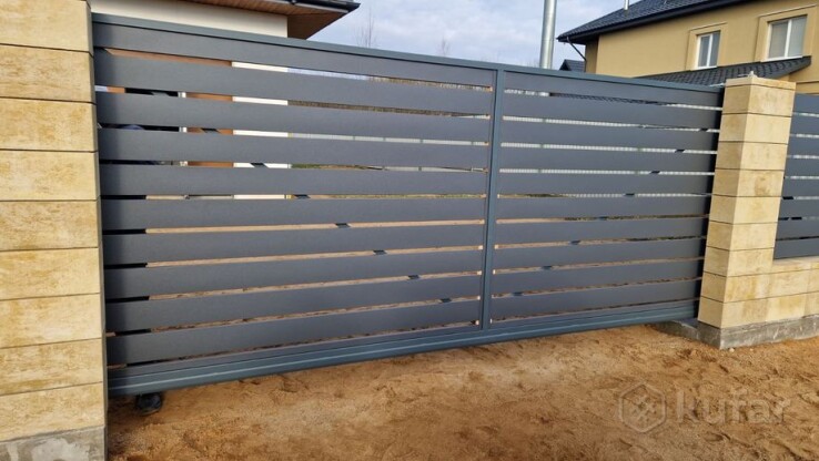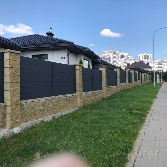 Двухсторонний забор ранчо - это современный тип ограждения, который характеризуется горизонтальным расположением металлических ламелей, закрепленных на несущей конструкции с небольшими зазорами. Отличительной чертой является его двусторонний внешний вид, одинаково привлекательный как снаружи, так и изнутри. Конструкция обеспечивает хорошую циркуляцию воздуха и защиту от посторонних взглядов, при этом сохраняя достаточную освещенность участка.