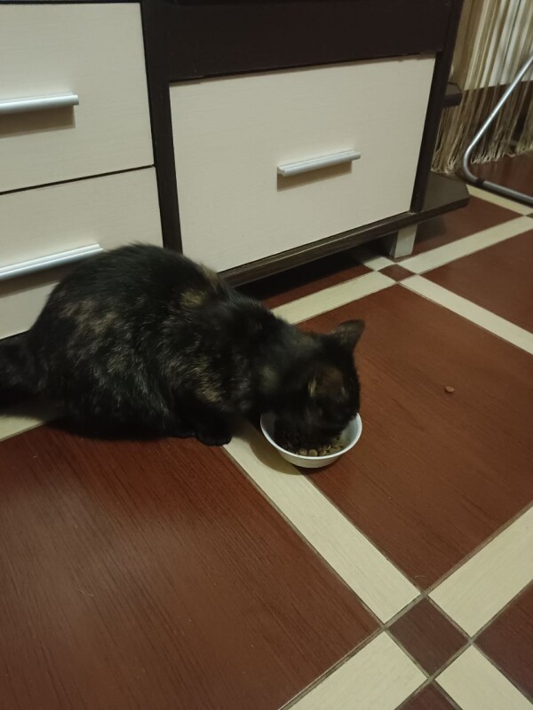 В районе улицы Рождественской. Откликается на кличку "Мышка". Ручная. Серая, с чёрными и рыжими полосами.