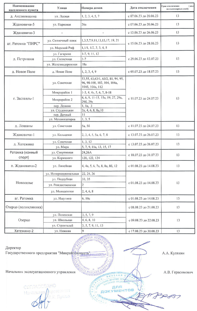 График плановых отключений горячего водоснабжения в жилых домах КУП "ЖКХ Минского района" в межотопительный период 2023 года был опубликован на сайте государственного предприятия "Минрайтеплосеть".