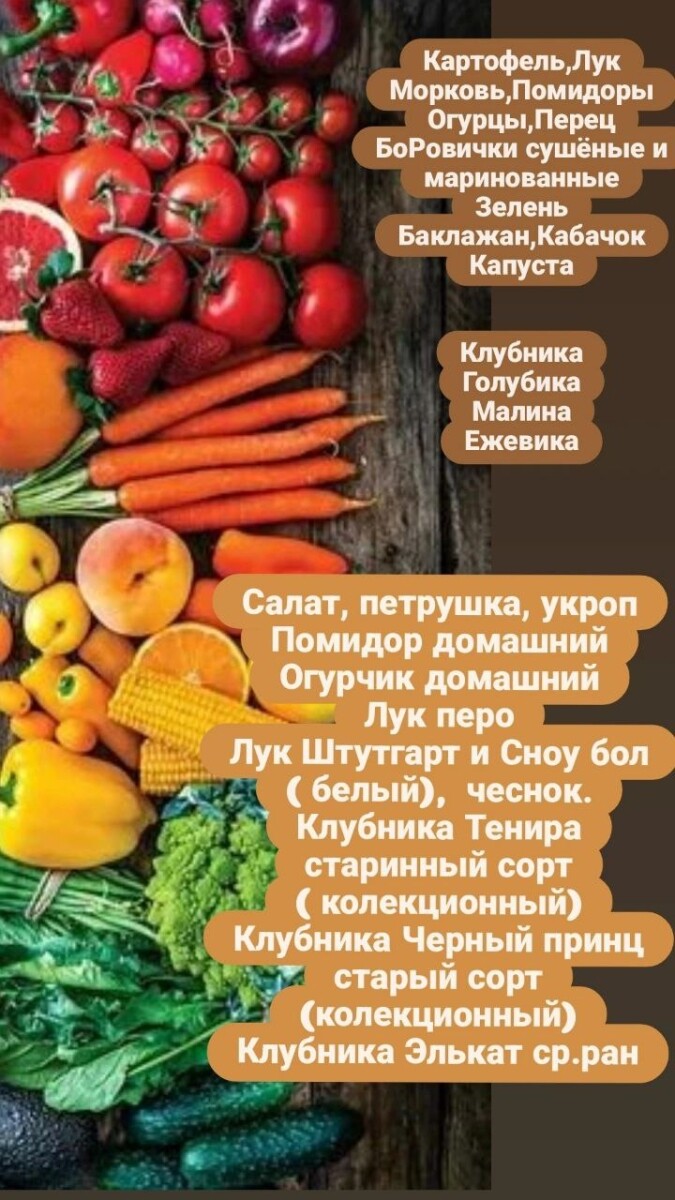 Картофель, перцы, баклажаны, помидоры закаточные, салатные, черри.