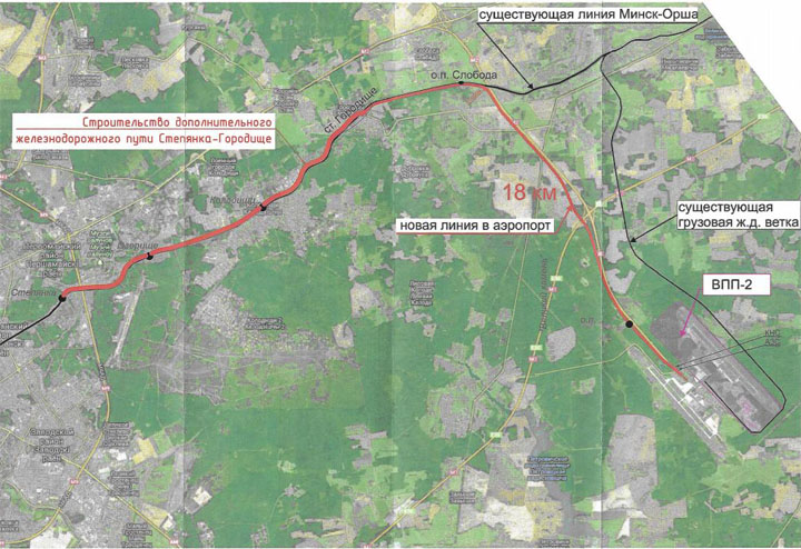 О возможном строительстве непрерывной железнодорожной ветки в Национальный аэропорт Минск впервые сообщалось в 2019 году, когда Президент Беларуси Александр Лукашенко открывал вторую взлетно-посадочную полосу.