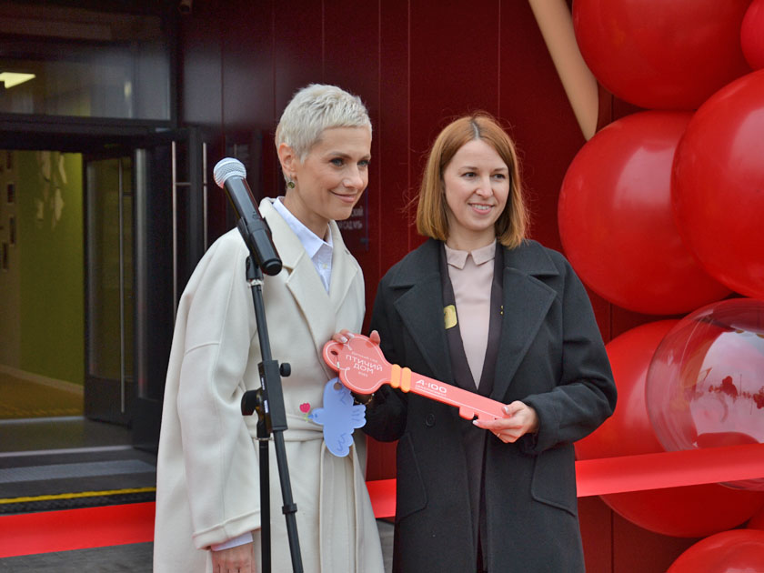 Генеральный директор группы компаний "А-100 Девелопмент" Анна Ястребова вручила символический ключ заведующей детского сада: