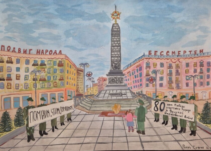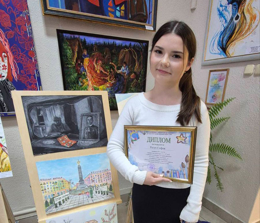 Ученица 9 класса Колодищанской средней школы Рогач София заняла третье место в районном конкурсе рисунков «Помним. Чтим. Гордимся».