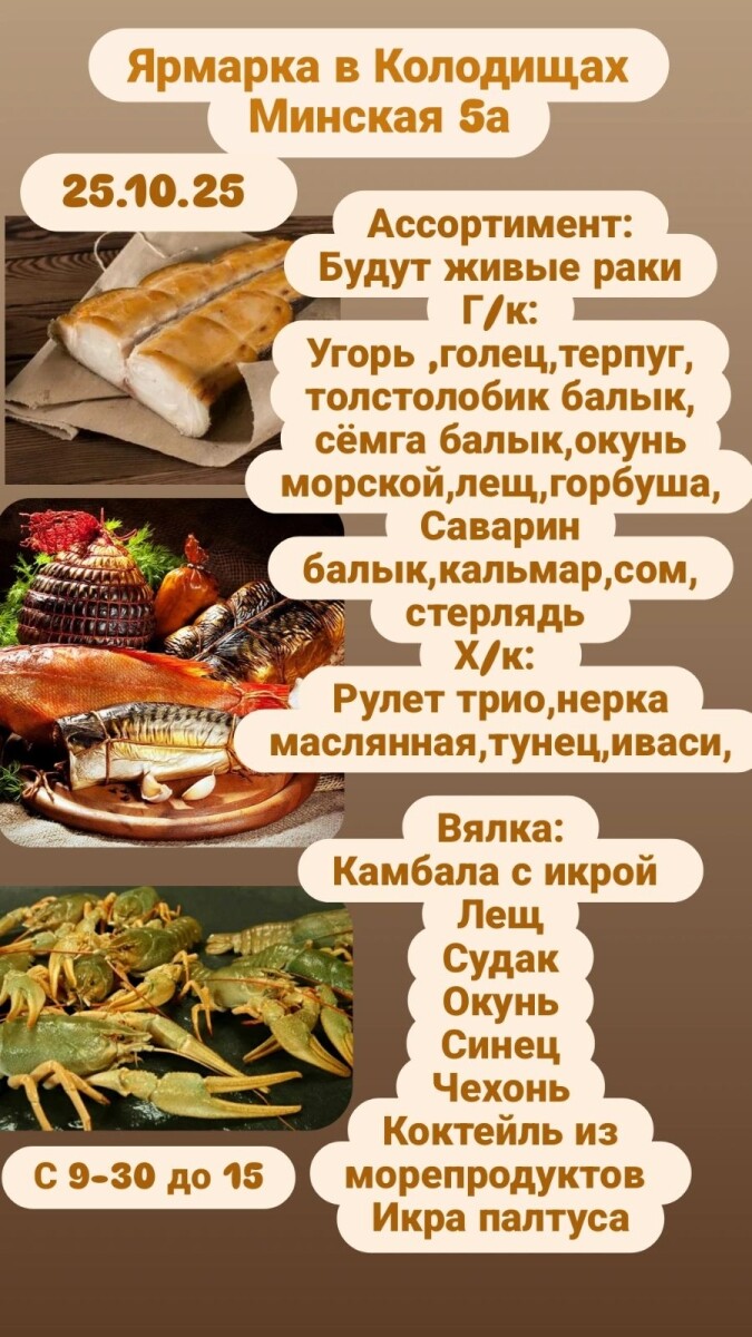 - Рыба домашнего копчения в ассортименте, живые раки;