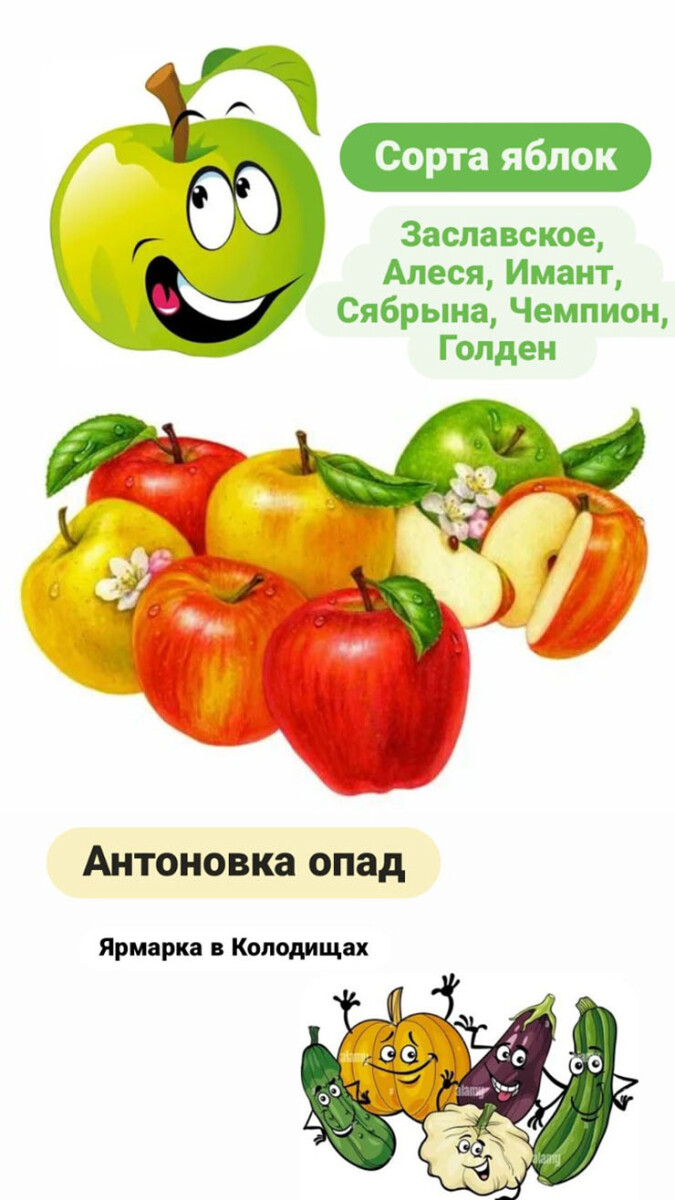 - Сезонные овощи, картофель, яблоки;