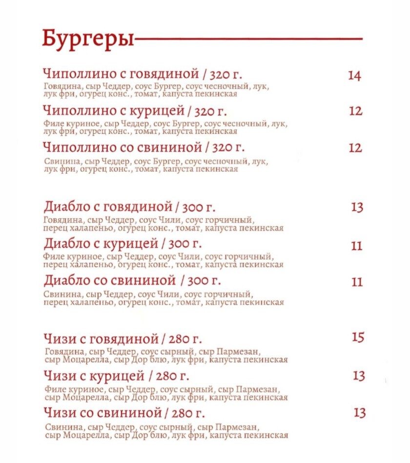 В меню кафе "Капрезе" по улице Военный городок в Колодищах появилось много различных бургеров. Прайс с ценами был опубликован в истории аккаунта кафе в Инстаграм.