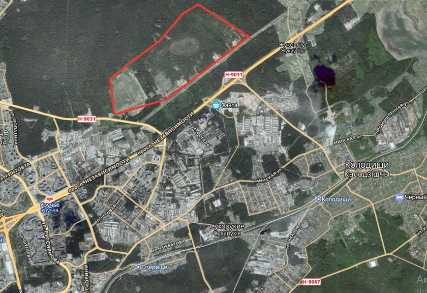Одной стороной он примыкает к трасе Колодищи-Заславль.