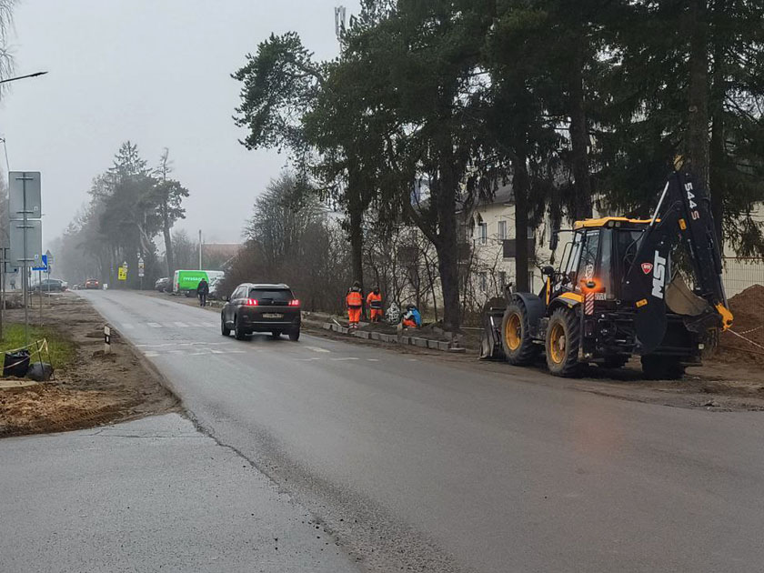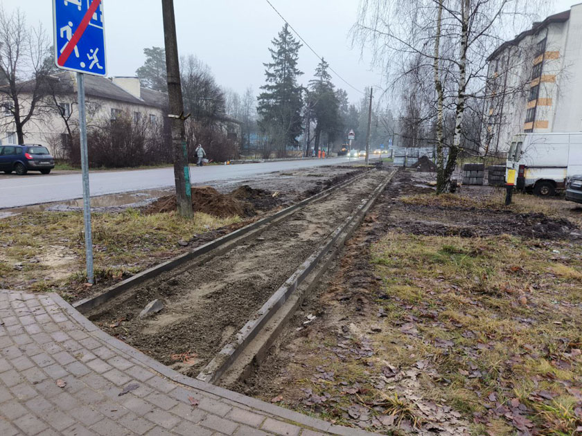 Как и сообщалось вдоль улицы Минская приступили к работам по устройству тротуара в продолжение существующего в направлении "Белтелекома". Пешеходная дорожка будет выполнена из тротуарной плитки.
