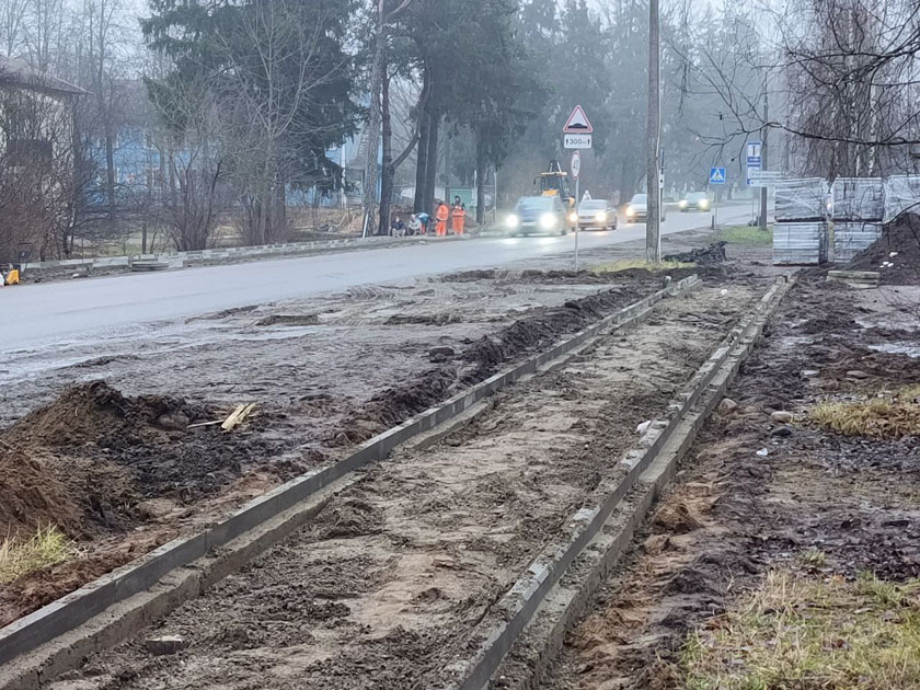 Фото: в Колодищах начали строить пешеходную дорожку по ул. Минская