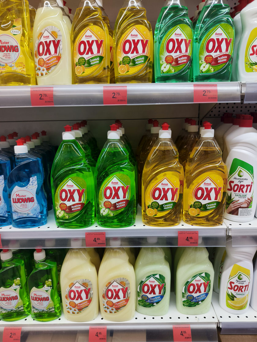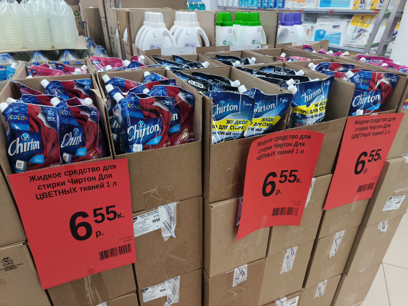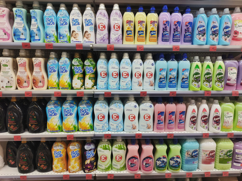 Бытовая химия: средства для стирки, уборки, мытья посуды, освежители воздуха.