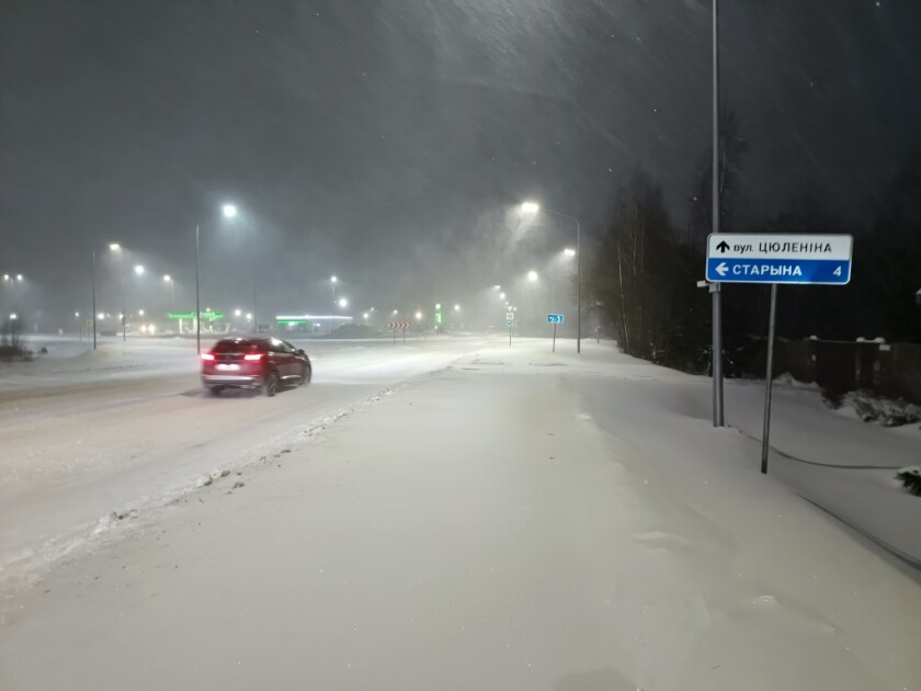 8 января в Минске и пригороде обильный снегопад начался уже в 18.00. Через три-четыре часа в Колодищах насыпало уже прилично, на многих пешеходных дорожках снега минимум пощиколотку, на дорогах пока проезжабельно. На основной дороге замечена техника ДРСУ, расчищающая проезжую часть.