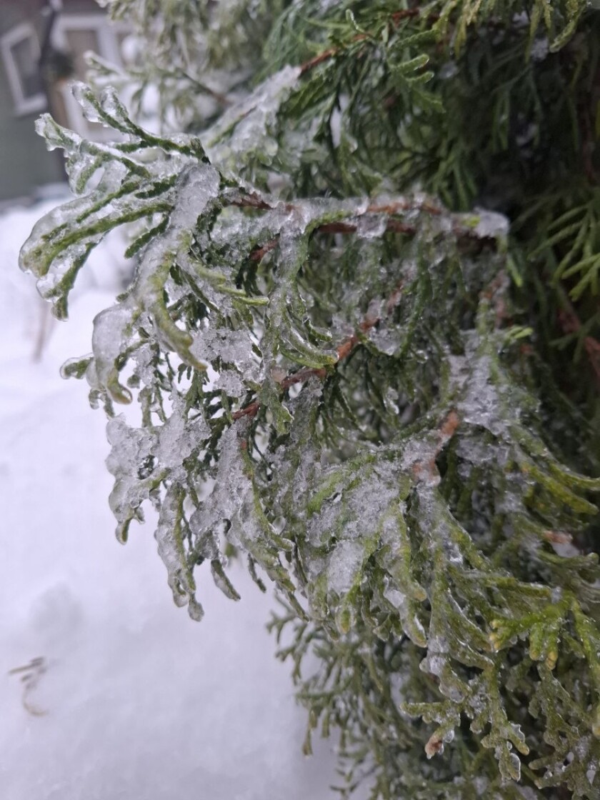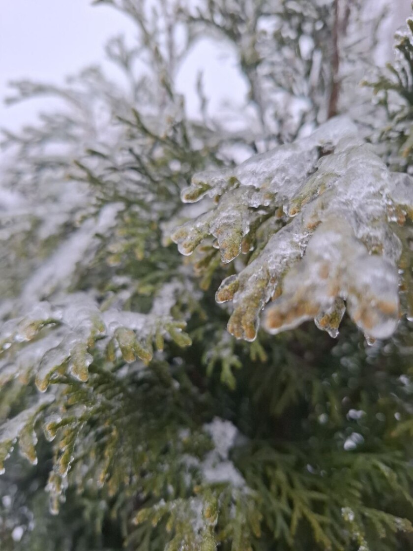 Во вторник, в связи с обильными осадками в виде мокрого снега, вся природа покрылось ледяной глазурью. Пока это не присыпало снегом подписчики Колодищи Инфо успели запечатлеть несколько красивых моментов на фото: