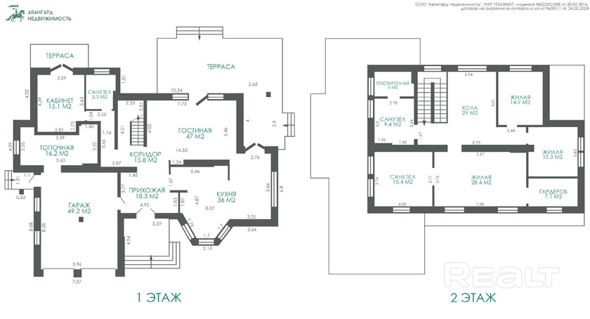 Основной дом имеет общую площадь 335,6 квадратных метрах, жилую - 128,1 м.кв. Имеется гараж на два автомобиля, а также просторная терраса.