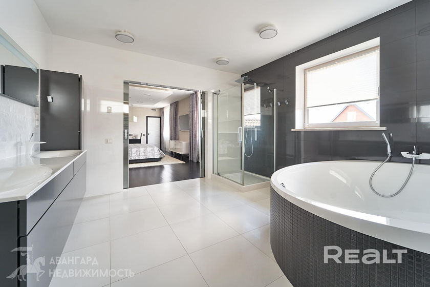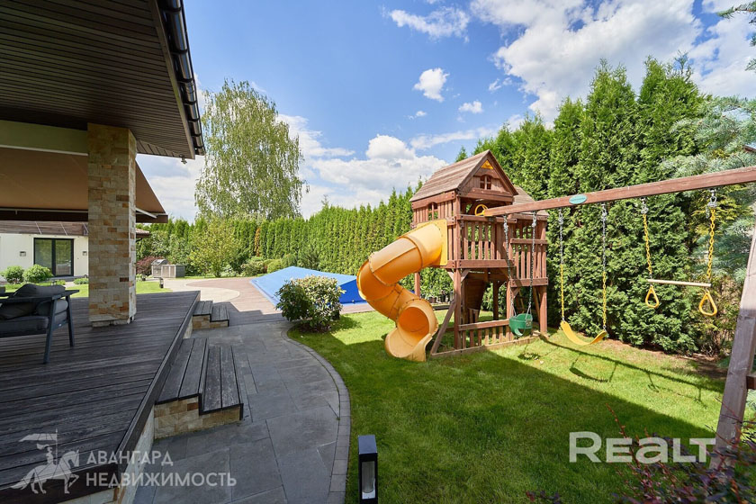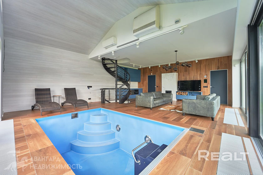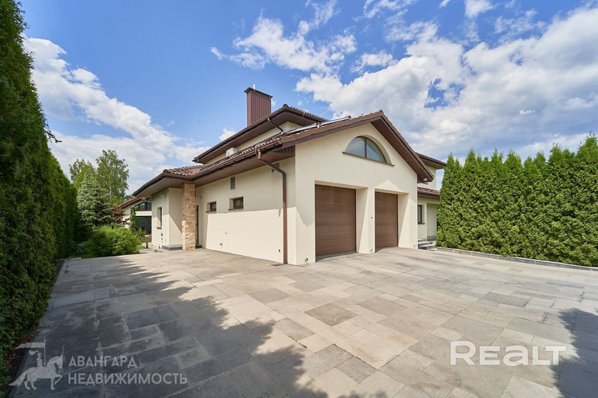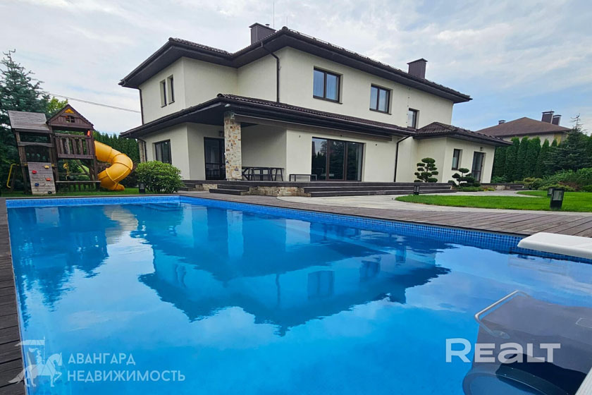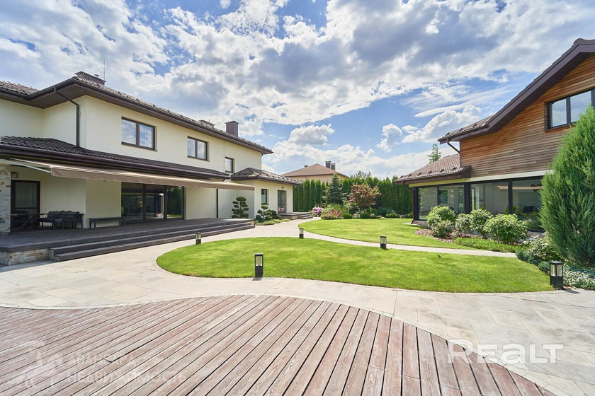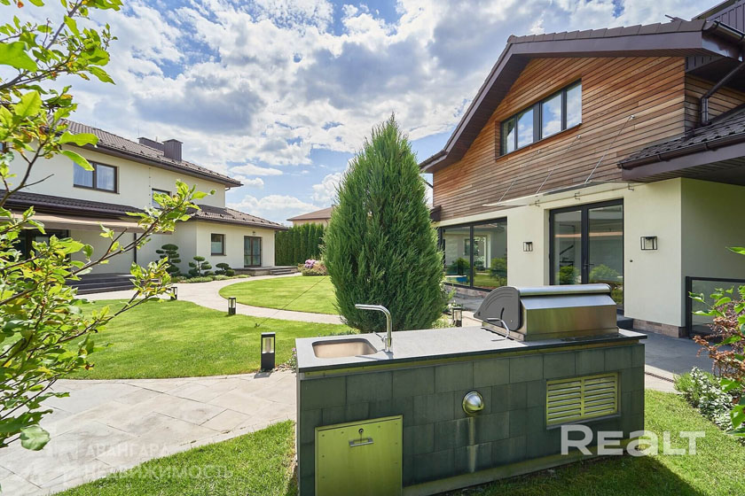 Находится дом в жилой застройке Колодищи-2 по улице Замковая. Стоит отметить, что стоимость обусловлена не только одним коттеджем: на участке в 15,6 сотки располагаются также гостевой дом со СПА-зоной и хозблоком, летняя кухня и открытый уличный бассейн с подогревом.