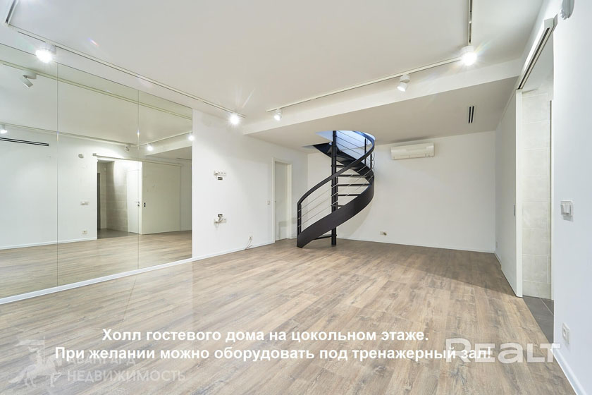 На первом этаже гостевого дома: комната отдыха с бассейном (бассейн с подогревом), парная с душем и санузлом, хозблок с отдельным входом со двора.