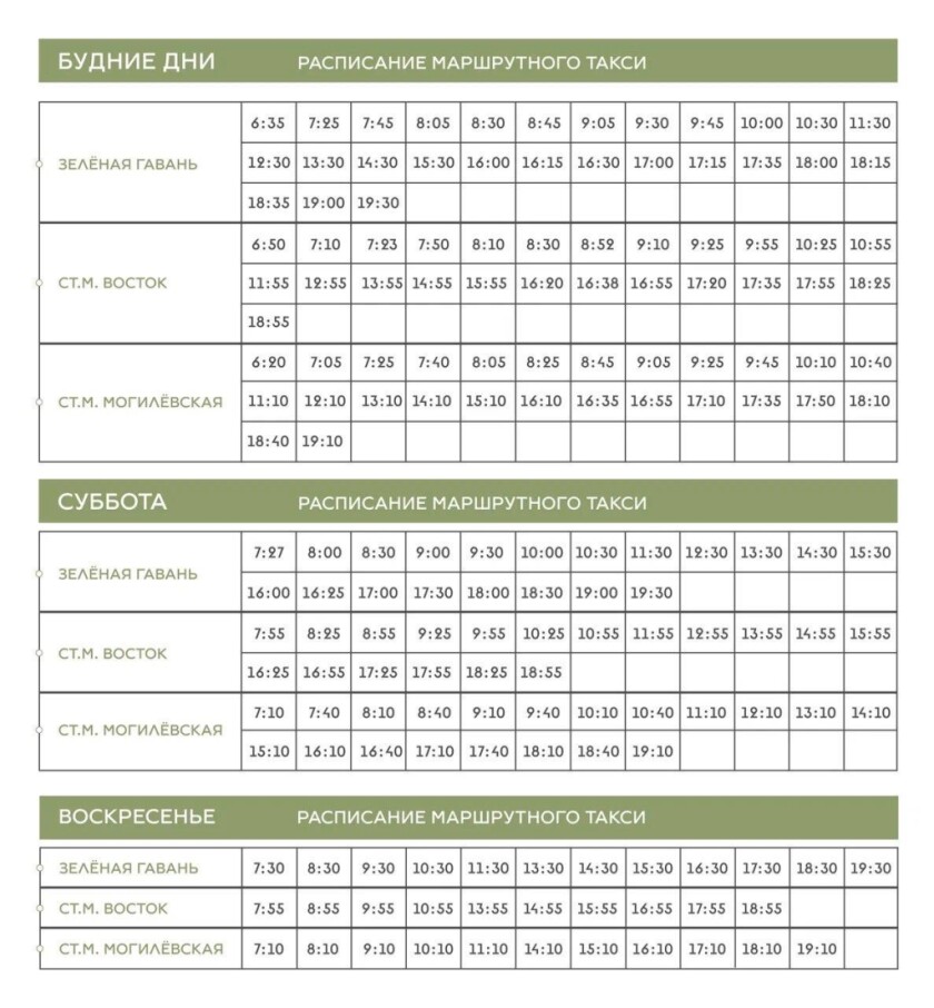 Изменилось расписание маршрутки на Зелёную гавань