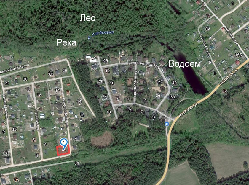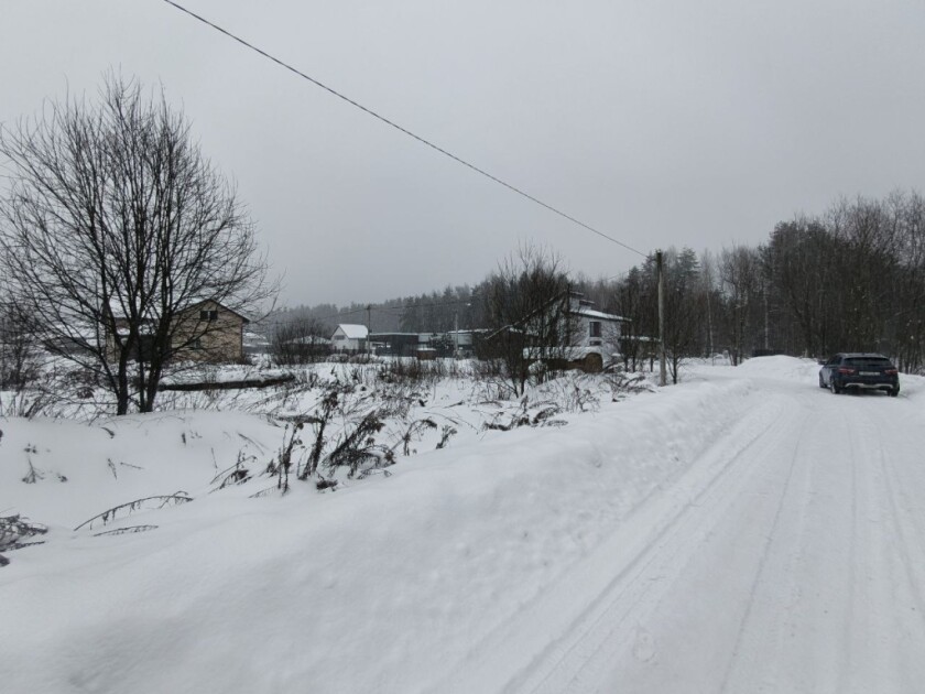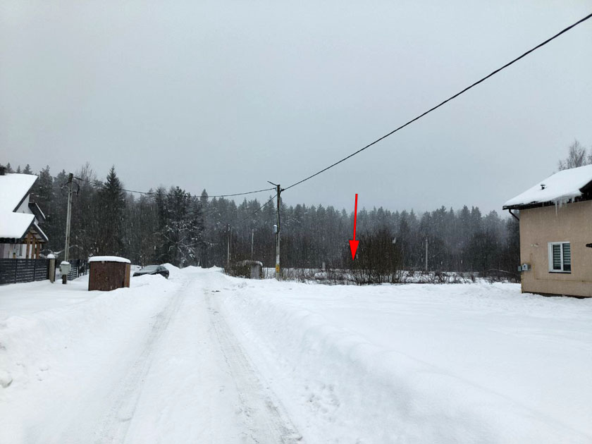 Место на мой взгляд шикарное: угловой участок рядом с лесом. Вокруг в основном новые достраивающиеся дома. Дорога к участку неплохая, от асфальтированной автодороги надо проехать метров 600 по гравийке. Зимой, по сегодняшнему снегу, доехал без проблем, дорога чищена.