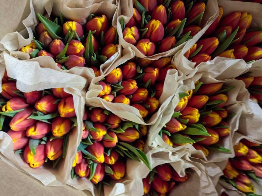 С 5 по 8 марта в продаже свежие тюльпаны — 4 рубля за штуку.