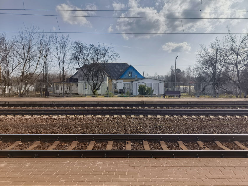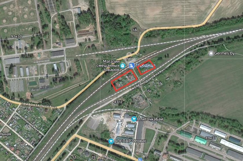 Интересное расположение жилых домов обнаружилось в поселке Городище Колодищанского сельсовета. Прямо возле станции располагается три жилых дома, с двух сторон от которых проходят действующие ж/д пути.