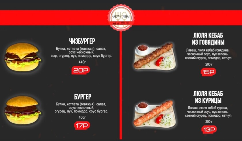 Обновлённое меню было опубликовано в Инстаграм кафе "Закусочная":