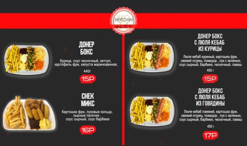 Также в продаже сытные боксы, сосиски в лаваше, бургеры, картофель фри и многое другое.