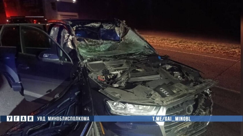 Под Смолевичами Audi Q7 столкнулся с лосем: пассажир погиб, водитель в больнице
