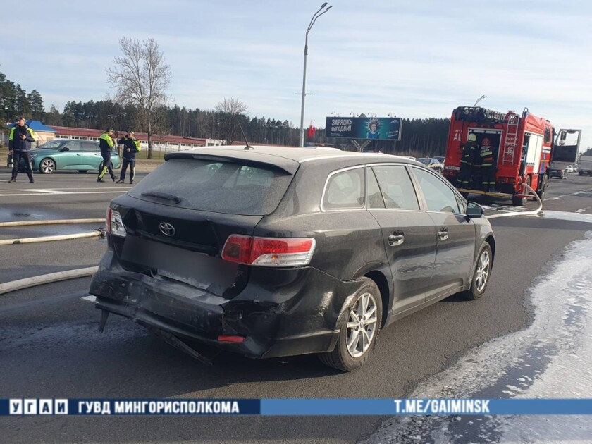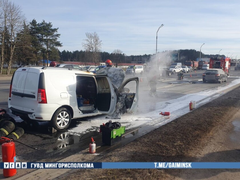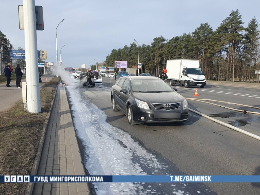 Сегодня утром 46-летний водитель автомобиля «LADA», двигаясь по проспекту Независимости, вблизи здания №202, по предварительной информации, при возникновении препятствия в виде стоящего автомобиля «Toyota» не принял меры к снижению скорости, в результате чего совершил на него наезд. В дальнейшем произошло возгорание автомобиля «LADA».