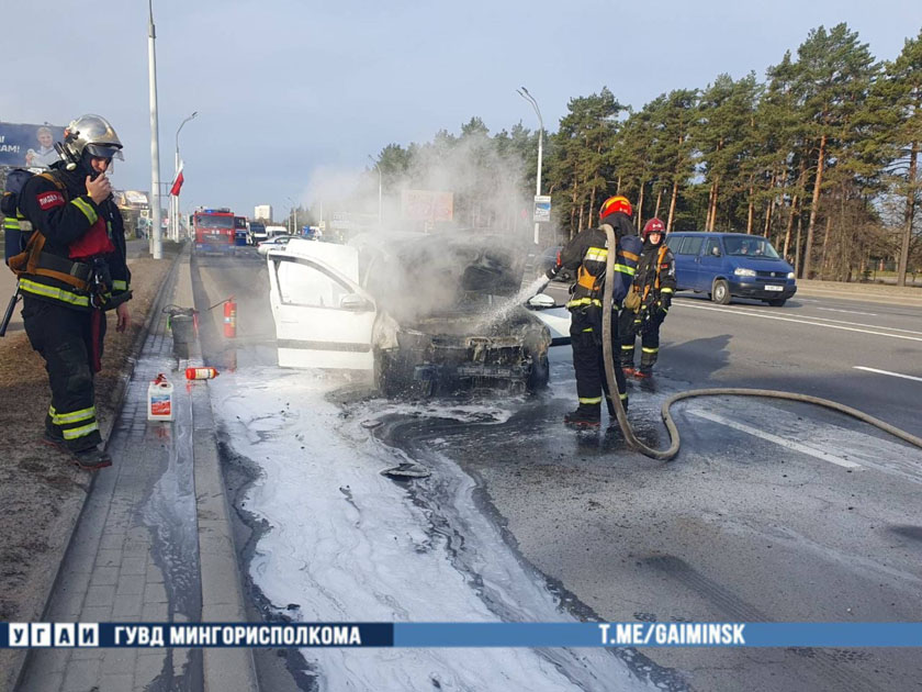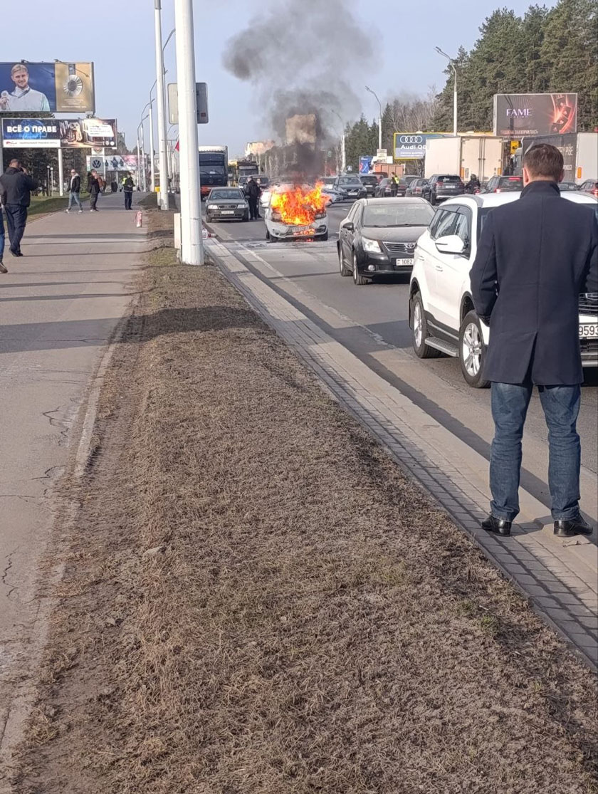 На проспекте возле Уручье горел автомобиль. Что случилось?