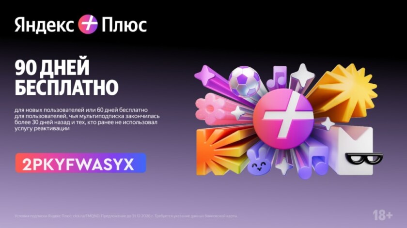 Активируйте промокод 2PKYFWASYX по ссылке https://plus90.prfl.me/sites/17t6e7 и окунитесь в мир Яндекс Плюса — где всё удобно, весело и с выгодой.