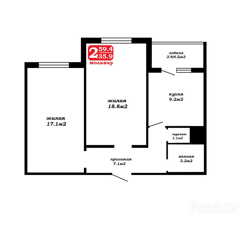 Двухкомнатная квартира расположена на 5 этаже дома по адресу: аг. Колодищи, ул. Культурная, 1. Ее площадь составляет 59,4 метра квадратных. Продают квартиру за 294 703 рубля (100 950 долларов по курсу).