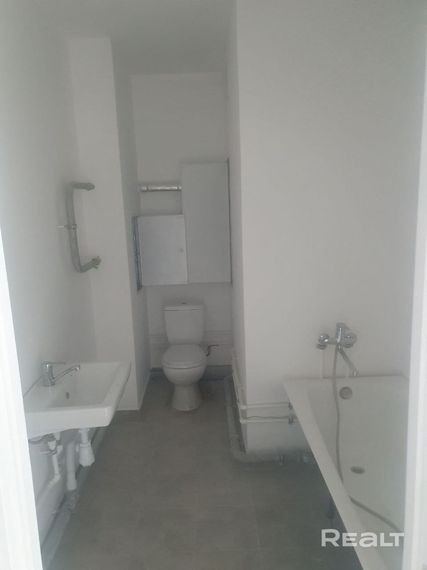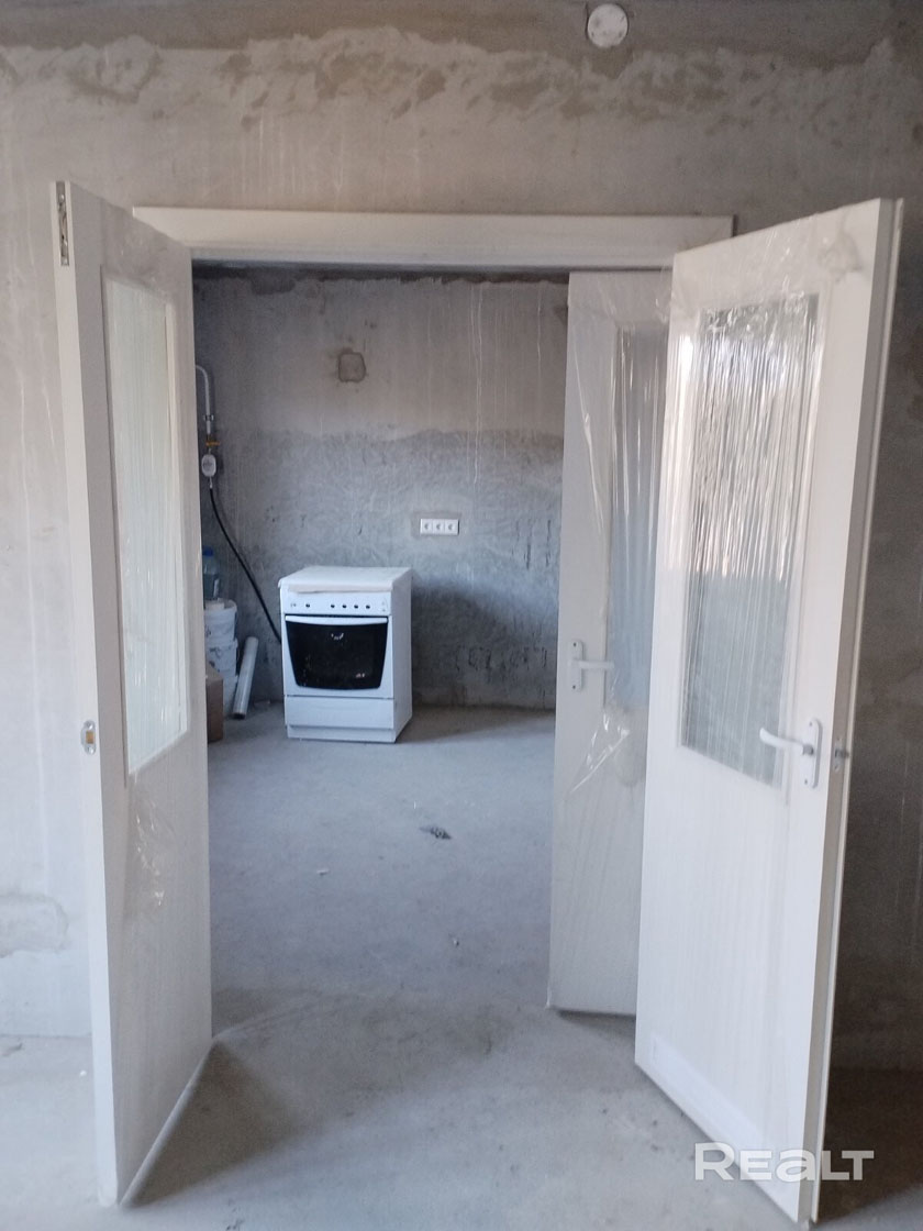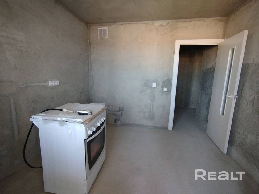 В квартире выполнена черновая отделка. Установлены розетки, проведена вся проводка, установлены радиаторы с регулировкой температуры, газовая плита и дверь на кухне. Санузел укомплектован (унитаз с крышкой).