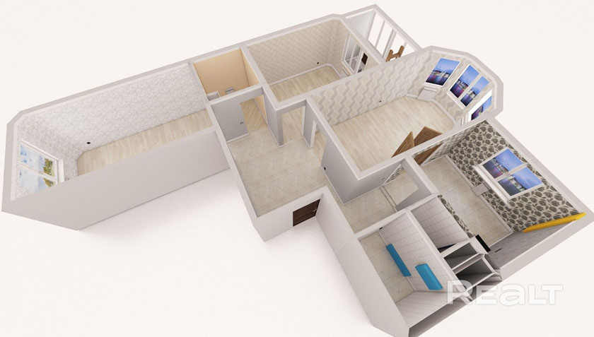 Трехкомнатная квартира расположена на третьем этаже дома по адресу: аг. Колодищи, ул. Культурная, 7/2. Общая площадь 82 квадратных метра, без отделки, имеется балкон. Продают квартиру за 350 316 рублей (120 000 $).