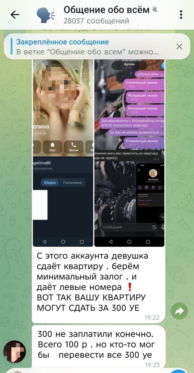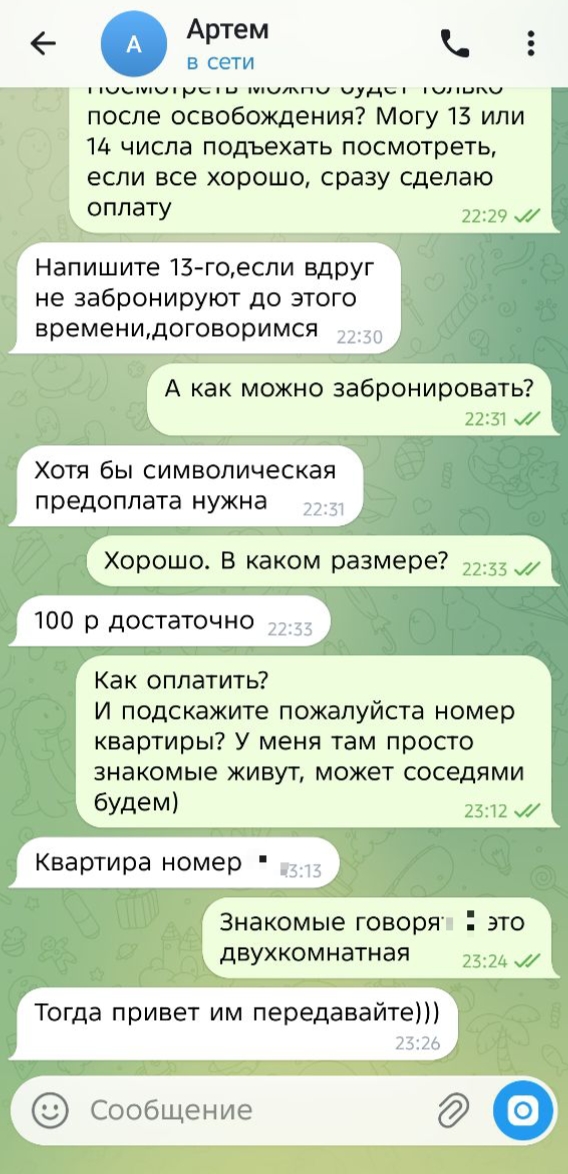Еще при первом размещении объявления, местная жительница из нашего чата перевела предоплату. А когда пришел срок заселяться, на сообщения и звонки в мессенджере никто не отвечал.