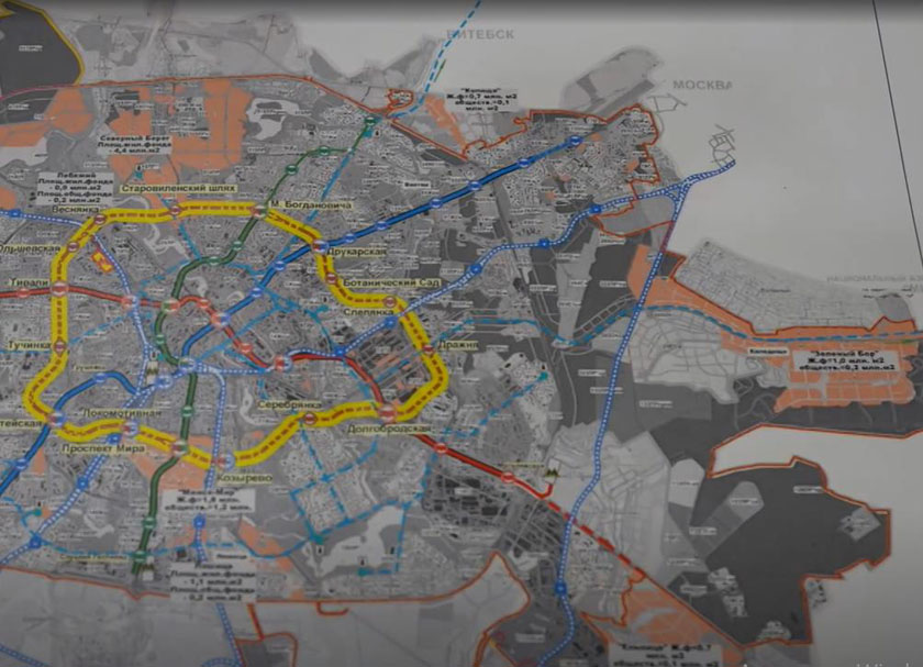 На телеканале ОНТ вышел сюжет про развитие сети столичного метрополитена. В кадр программы попала обновленная схема четвертой кольцевой линии метро. В сравнении с прошлой схемой, можно заметить, что кольцо сместилось восточнее и на линии появились такие станции, как Слепянка, Долгобродская, Дражня. К последней, к слову, будет идти прямая автодорога от будущего жилого района Зеленый бор: