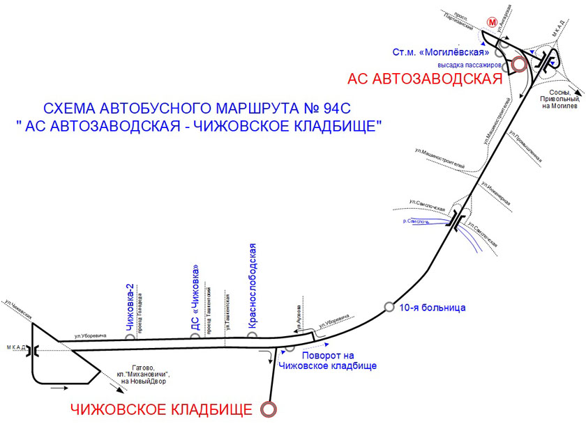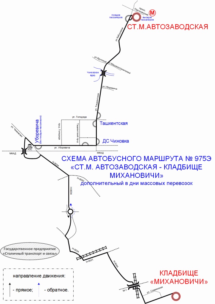 — только 21.04.2026 с 07:00 до 17:00 организуется дополнительный экспрессный автобусный маршрут № 975Э «Ст. м. Автозаводская – Кладбище Михановичи», отправления будут осуществляться по мере наполнения салонов автобусов. Остановочные пункты для посадки: «ст.м. Автозаводская», «Ташкентская», «ДС Чижовка».