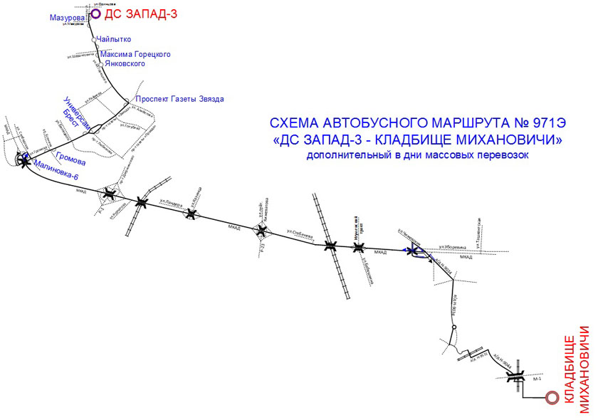 — только 21.04.2026 с 07:00 до 17:00 организуется дополнительный экспрессный автобусный маршрут № 971Э «ДС Запад-3 – Кладбище Михановичи», отправления будут осуществляться по мере наполнения салонов автобусов.