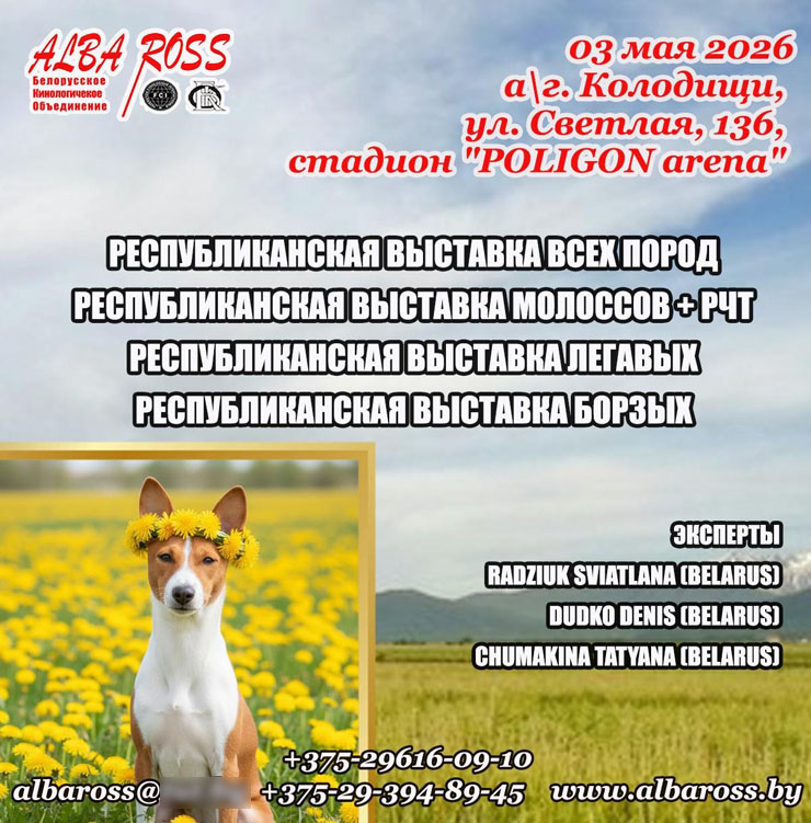 В агрогородке Колодищи 3 мая состоится Республиканская выставка собак всех пород. Об этом Колодищи Инфо сообщили организаторы мероприятия из Белорусского кинологического объединения "Альба Росс".