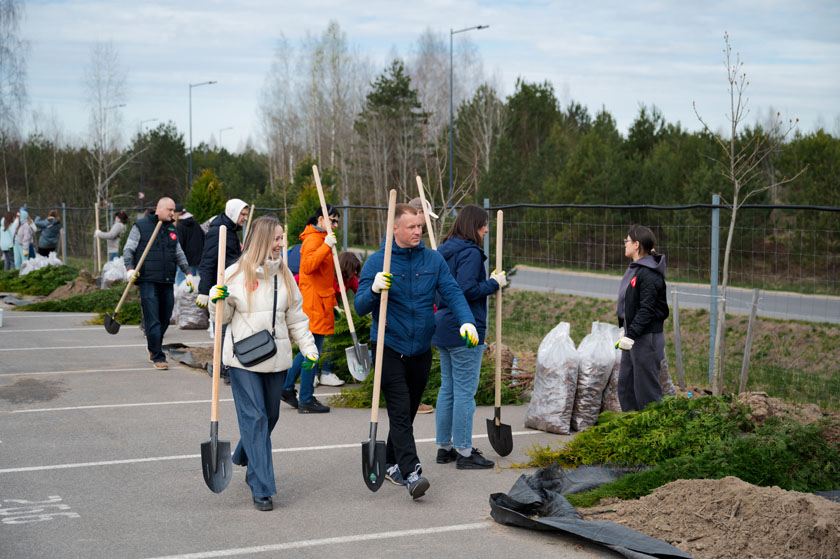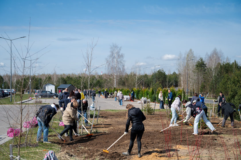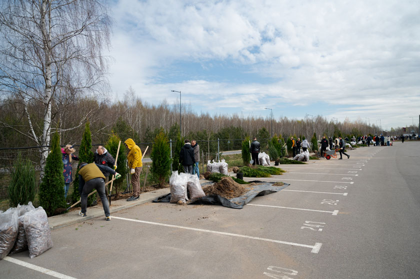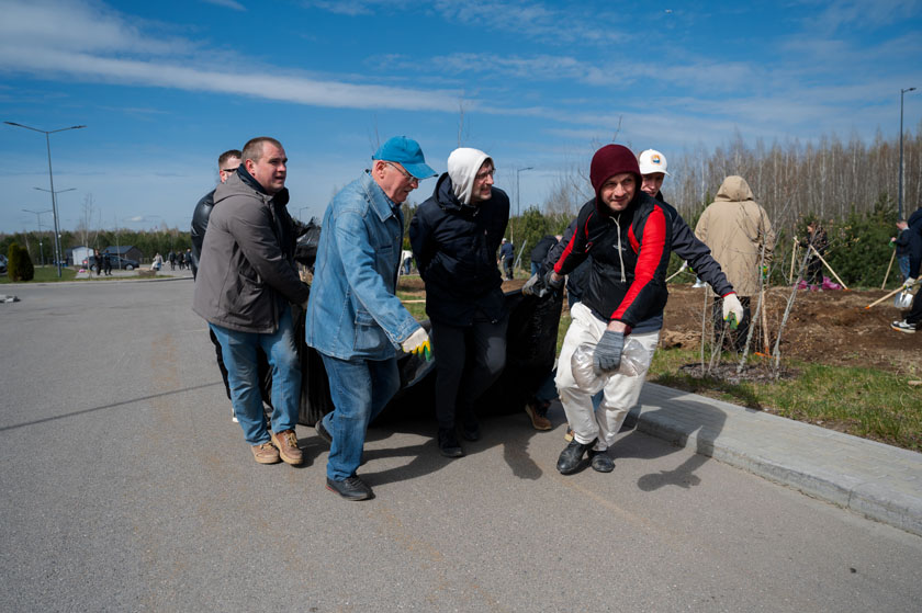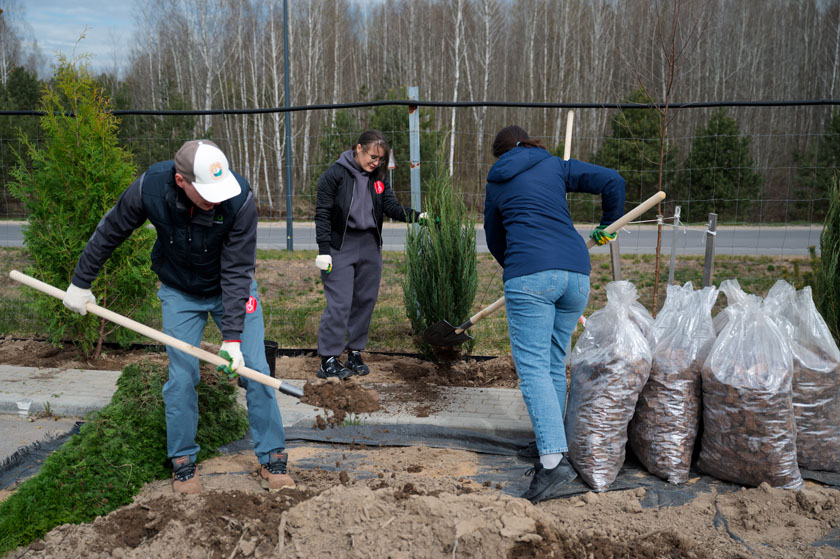 На эко-субботнике укрепили природные барьеры вокруг комплекса. А еще собрали кормушки для птиц и развесили их в новом участке-парке, где скоро закончат благоустройство и появятся новые прогулочные зоны.