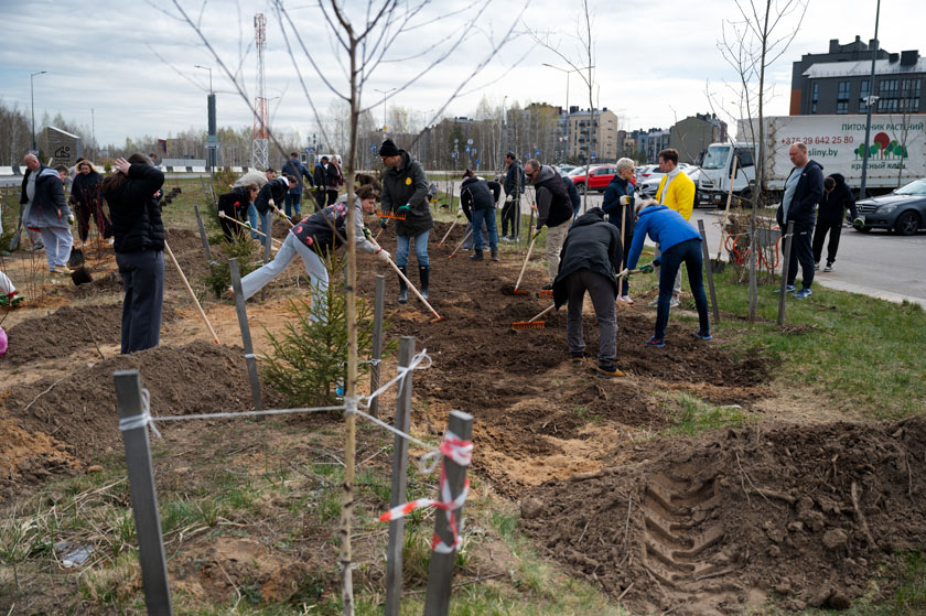 В Зеленой гавани прошел большой эко-субботник. Более 120 человек собирали кормушки для птиц и садили деревья, которые через пару лет превратятся в живую изгородь. Озеленением занимались и топ-менеджеры застройщика.
