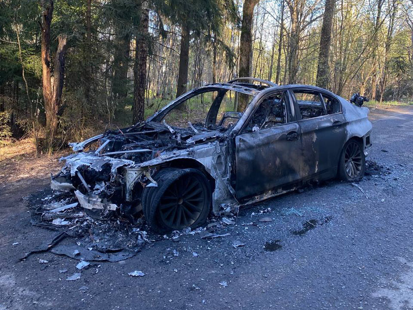 На дороге в Колодищах заметили сгоревший BMW